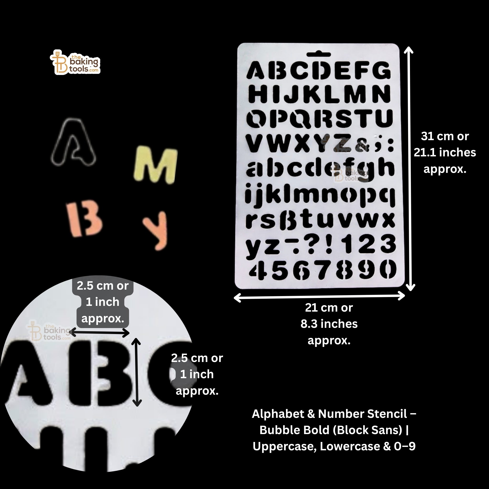 Alphabet & Number Stencil – Bubble Bold (Block Sans) | Uppercase, Lowercase & 0–9