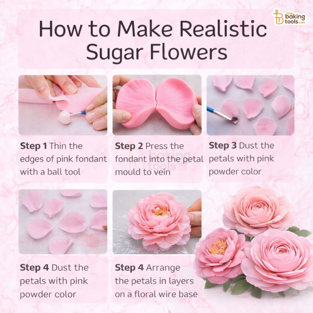 This mould helps you make natural-looking flower petals with deep vein texture and soft curves. It is perfect for making peonies, roses, ranunculus, and other large bloom flowers for cakes.