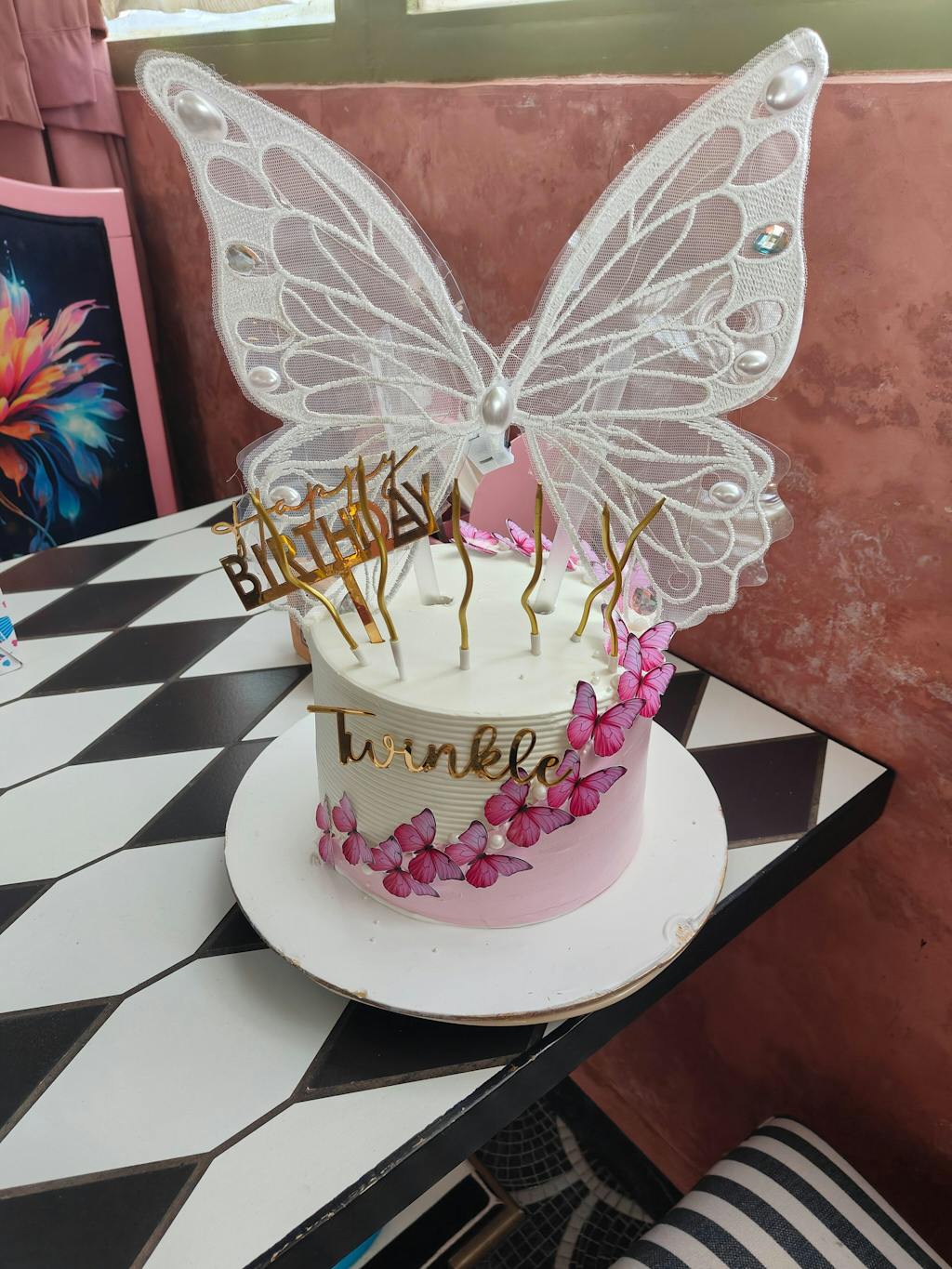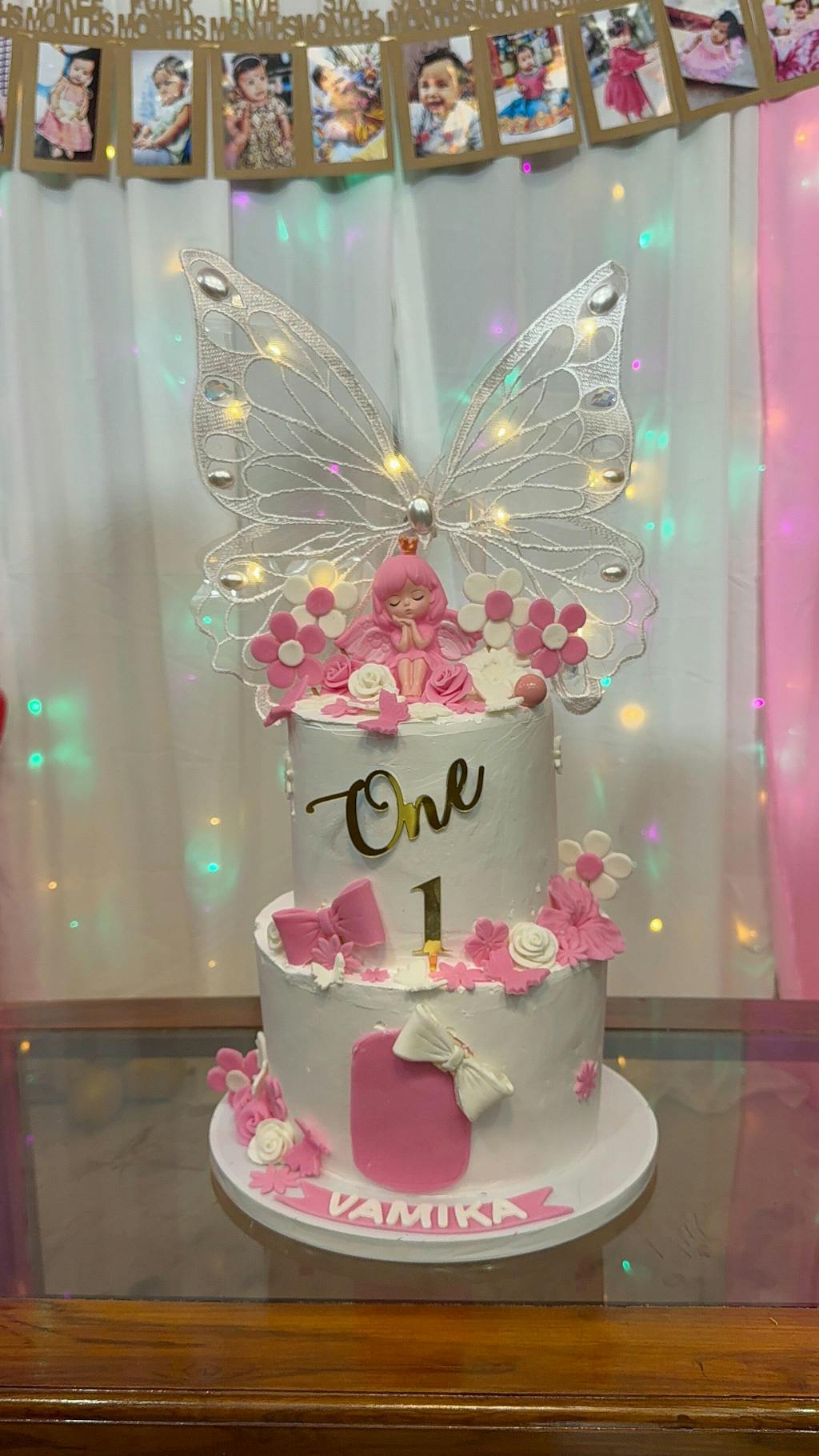 Our White Embroidered Angel Butterfly Wings Cake Topper features detailed embroidery, artificial pearl & diamonds details with adjustable light modes. Perfect for girl's birthday cakes, fairy-themed desserts, weddings, engagements, and home décor.