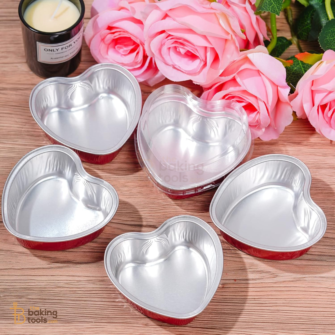 Bake, serve, and gift with ease using these heart shaped aluminium cake cups with lids.