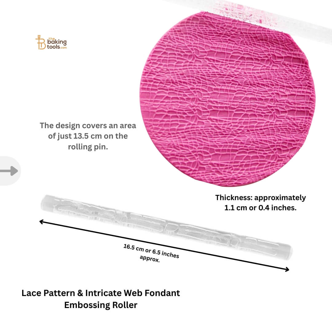 This lace pattern embossing rolling pin helps you add a detailed web-like texture to fondant and dough. It is perfect for adding a sophisticated, fabric-like finish to your desserts with just one roll.