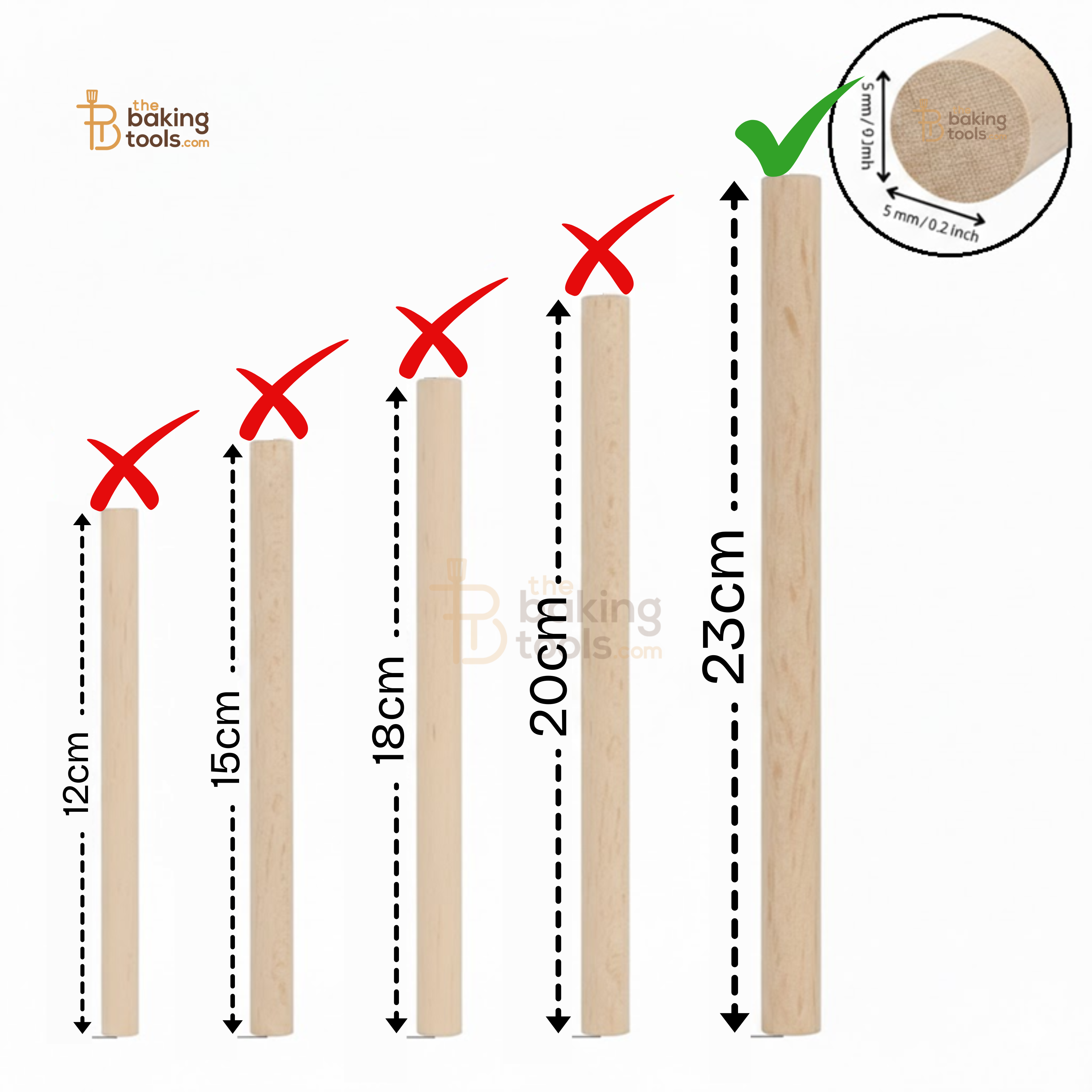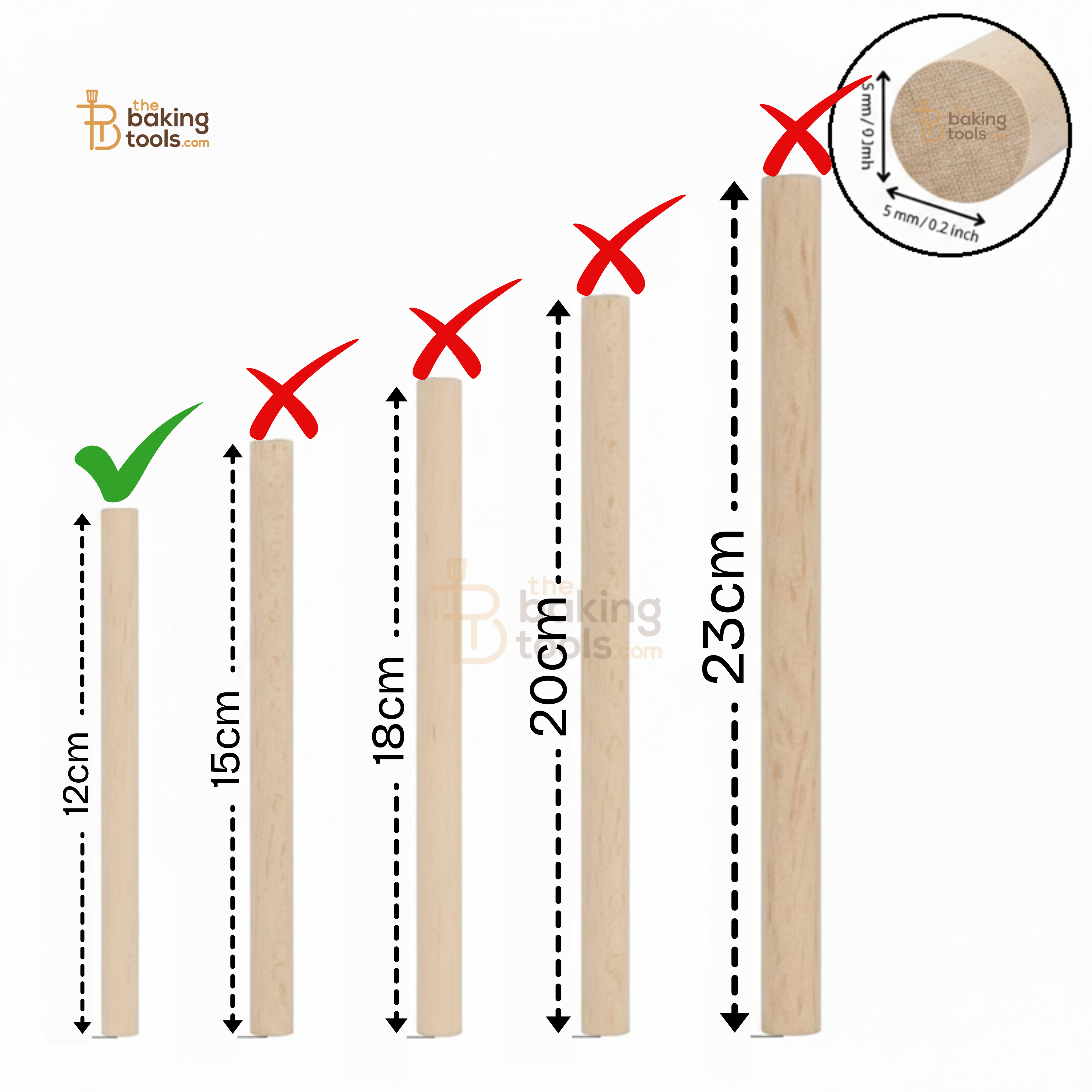 At 5mm thick, these dowels offer superior strength compared to standard straws or thin skewers, preventing "cake lean" or structural collapse in heavy fruitcakes or dense sponges.
