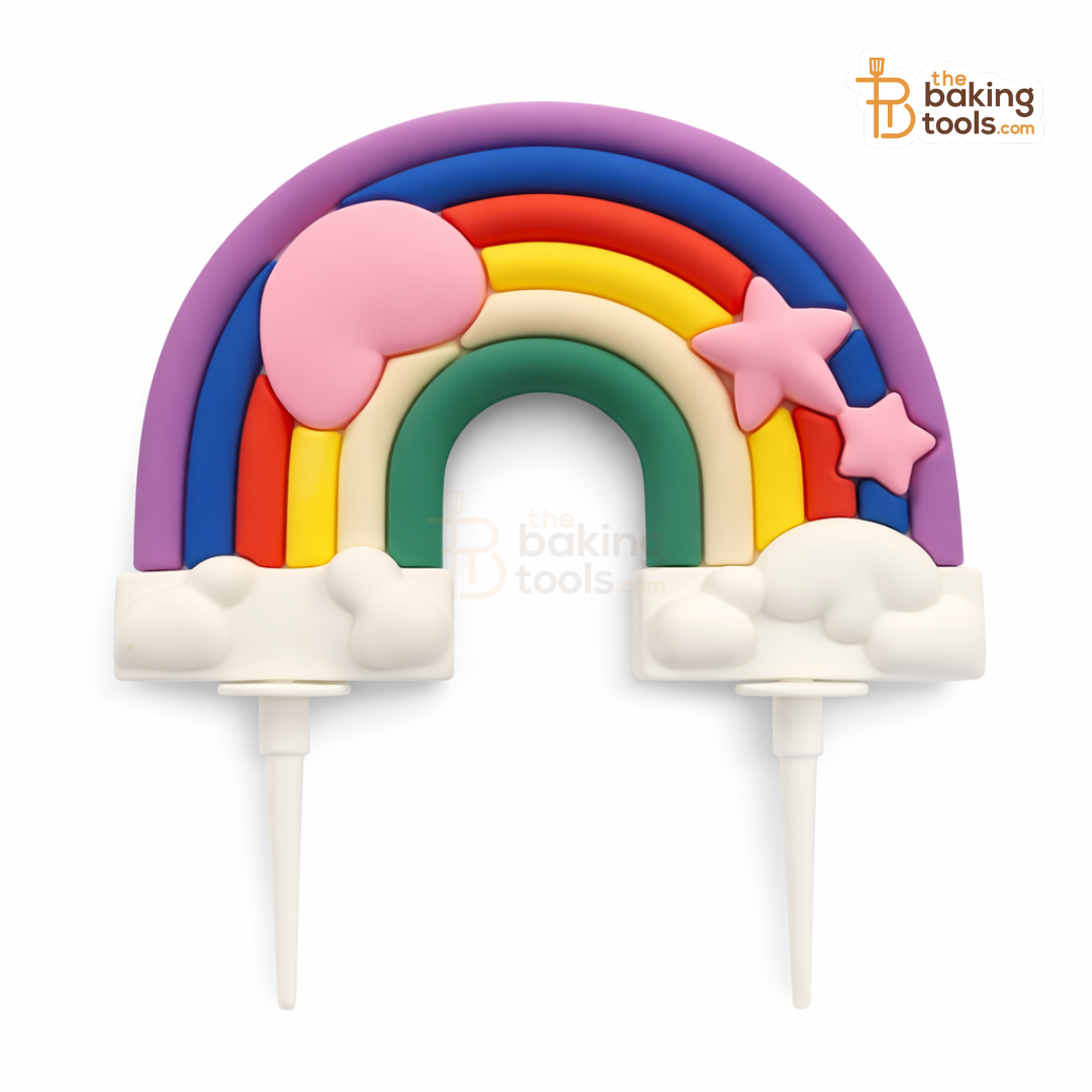 It comes with a cute heart and two stars on the rainbow. Soft pastel shades make it perfect for birthday cakes.